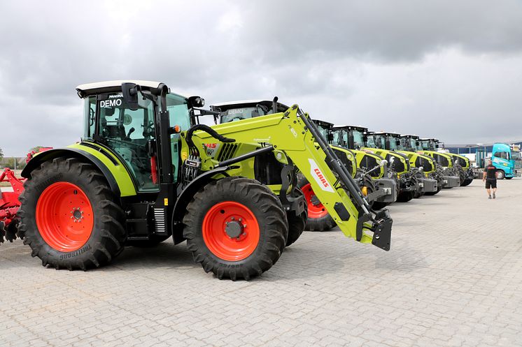 Alla traktorer och redskap samlade i Skurup innan avfärd.