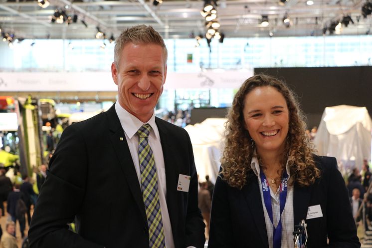 CLAAS Sverigechef Henrik Hesby tillsammans med Jordbruksakutellts Katarina Johnsson.