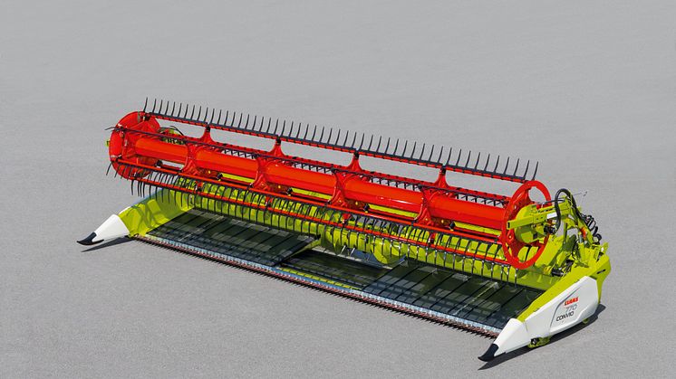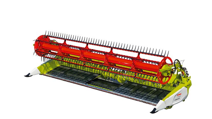 CLAAS is extending its range of CONVIO FLEX and CONVIO draper cutterbars to include the 930 and 770 models with working widths of 9.30 m and 7.70 m. While the CONVIO is used above all in classic threshing crops, such as cereals and rapeseed, the CONVIO FLEX with its flexible knife bar is also able to achieve top performance in crops such as soybeans, peas, and grass.