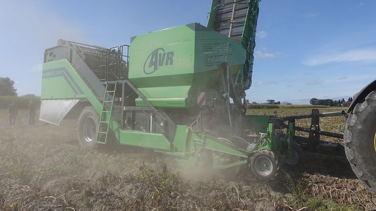 Our newest Spirit 7200 recently joined the AVR Spirit family as a trailed, two-row offset potato harvester. New for this machine is that it can now optionally be equipped with the new Clean & Go bunker.