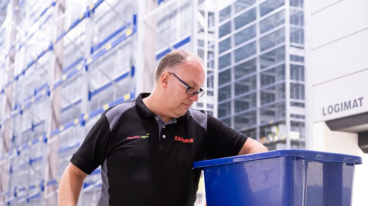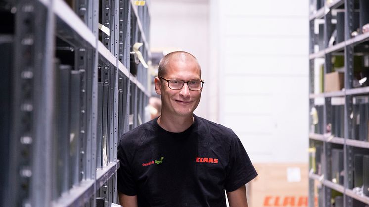 - Nu är reservdelslagret i drift. Alla delar är inne i systemet men några ska fortfarande upp på hyllan. Eftersom våra anläggningar täcker större område har vi sedan tidigare ett bra lager ute på våra anläggningar. Jag skulle vilja säga att lantbrukarna i exempelvis Mellansverige aldrig haft så bra tillgång på reservdelar från CLAAS som nu, säger Martin Gerdtsson som är reservdelschef på Swedish Agro Machinery.