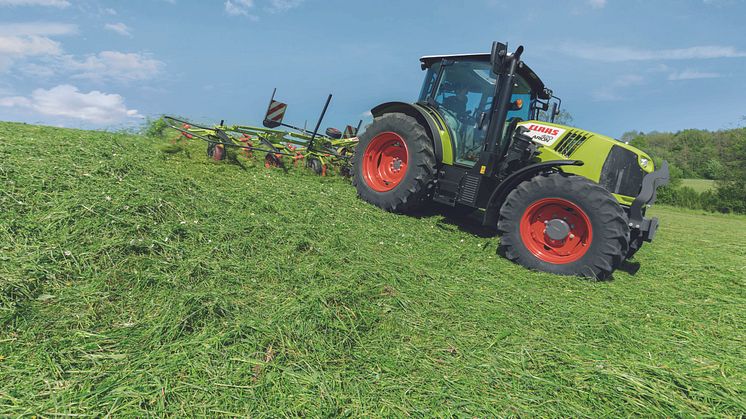 With its ARION 400 tractor series, CLAAS has successfully established itself in the compact 4-cylinder 90 to 140 hp tractor segment. In addition to the broad model range and wide variety of equipment options, customers particularly appreciate these tractors for their ease of operation and innovations such as the PANORAMIC cab for front-loader work. CLAAS now presents the next generation of the ARION 400 with new features and even more options. These include an additional cab option with transparent sunroof, a low-roof version in all models and an automatic compressed air drier for the braking system, as well as a new entry-level version and all the convenience of the CIS+ system.