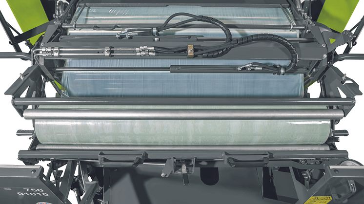 For the round balers in the ROLLANT 400 UNIWRAP family, CLAAS now offers a newly developed system for bale wrapping in the bale chamber. Instead of the usual net wrapping process, for the first time round bales can now also be wrapped with film.