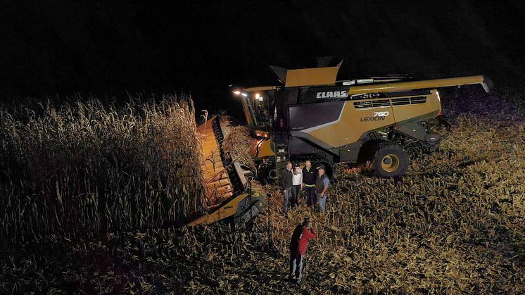 Back in 2010, a CLAAS LEXION achieved a record for harvesting grain maize over a ten-hour period on Stewart family land. At that time, the final volume was almost 1,300 t. However, the LEXION 760 has changed quite a lot in recent years. Increased power output, a larger grain tank and a more efficient cooling system made the new record attempt easier than that of 2010. The record-breaking crew also had access to CEMOS AUTOMATIC, a unique and powerful driver assistance system in the LEXION. In addition to adjusting all the threshing settings, the system also uses CRUISE PILOT to determine the ground speed, thereby always ensuring optimum utilisation.