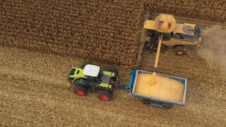 The record attempt began just before 9 am on 26/09/2018. The LEXION 760 TERRA TRAC used a 16-row corn header with Bob Stewart behind the wheel. The conditions were not exactly ideal. 12 mm of rain had fallen the day before. The first semitrailer took away maize with 17-18% moisture. It was a major challenge to provide enough trucks to ensure continuous removal.