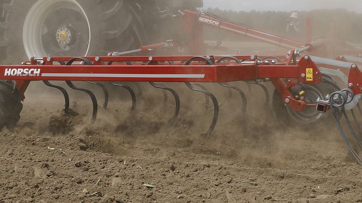 The available working widths of the Finer LT range from 6 to 12 m. The 4-bar machine is available with a 3-point attachment. The tine spacing of the spring tines is 15 cm with a frame height of 550 mm. The tine section is followed by a 2-bar harrow that removes even more of the plant material from the soil. The most special feature is the adjustable setting angle of the spring tines. It is possible to achieve a perfect, shallow cut that is parallel to the ground. The adjustability is very important for the adaption to the soil resistance and for always achieving an all-over cut. Light soils require less upward de-flexion, heavy soils considerably more. Support wheels control the precise working depth of the Finer. The main task of the Finer LT is the shallow cutting of weeds and grass weeds, volunteer crops or catch crops. It, thus, can be an alternative to glyphosate with regard to fighting weeds. Despite the high stability the horsepower requirement of the machine is rather low. The 12 m version only requires a 200 hp tractor.