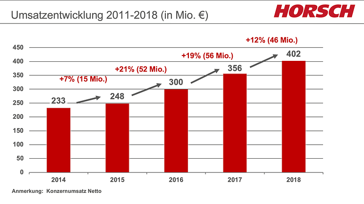 In 2018, with 402 million Euro the HORSCH Maschinen GmbH achieved the highest turnover in the company’s history. This is a two-digit growth for the third time in a row. There are many reasons for the 12% increase compared to 2017 (358 million Euro). HORSCH continues to carry out considerable investments at all sites, in the sectors service as well as R & D. In all sectors, HORSCH still consequently follows its strategy of putting the focus of all activities on the customer.