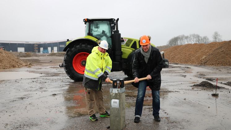 Idag togs det första pålslaget på Swedish Agro Machinerys reservdelslager, verkstad, utställningshall och huvudkontor i Skurup. Målet är att reservdelslagret ska stå klart innan skörden 2018.